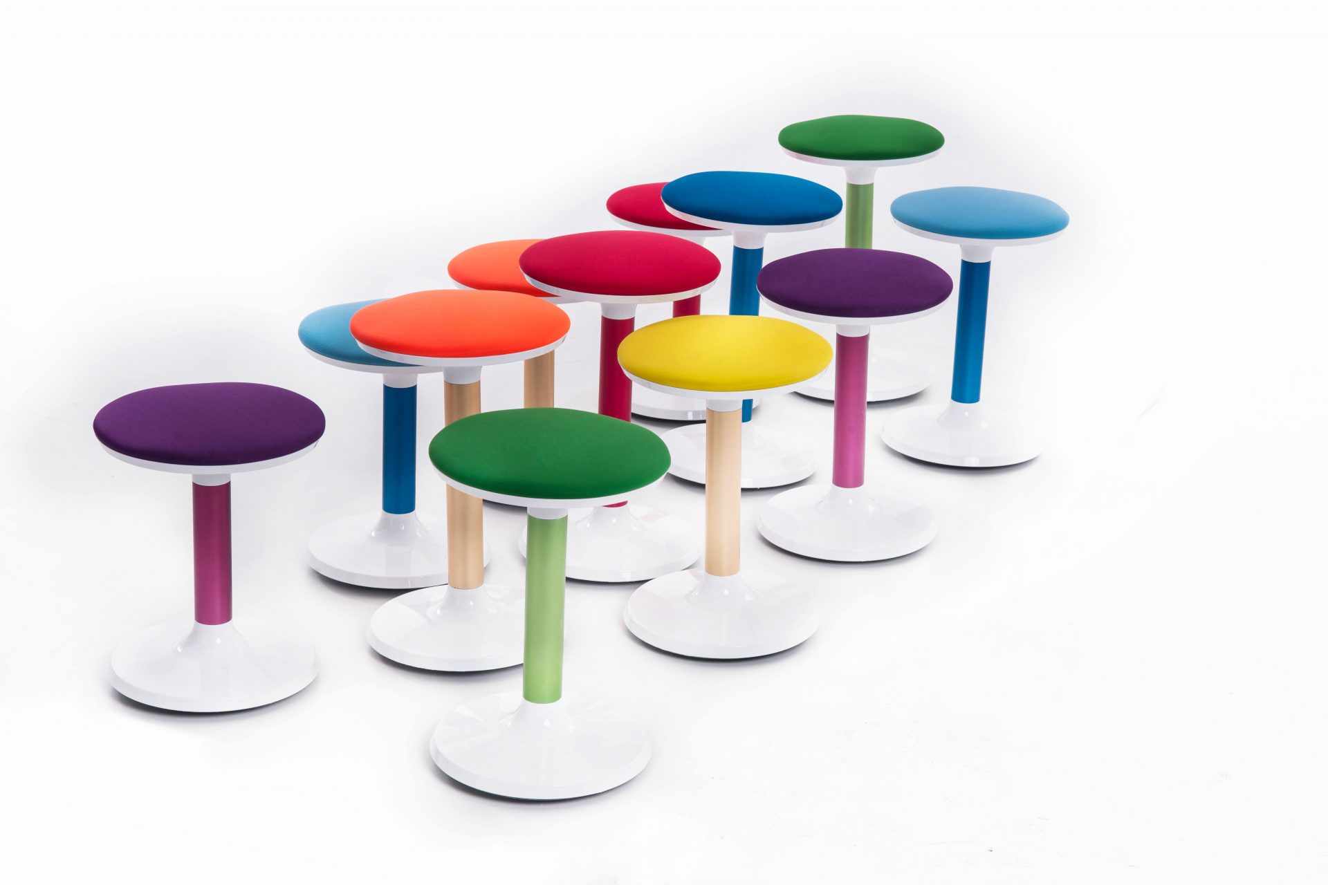 Designed to promote healthy sitting with mobility. Easily rocks from side to side, backwards and forwards thanks to a soft, convex base design. Sturdy white ABS shell and aluminium tube construction with upholstered seat pad.
